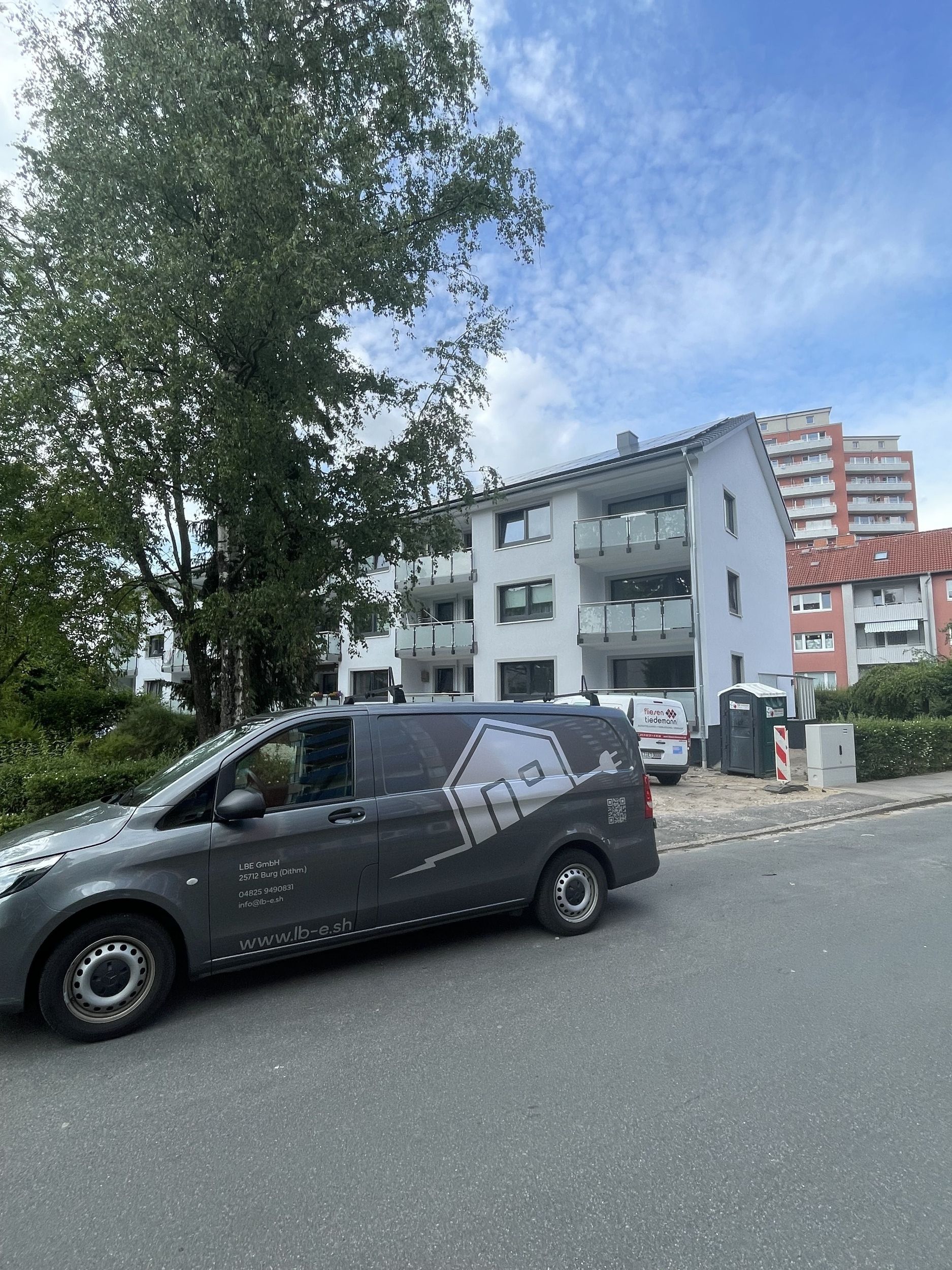 Energetische Sanierung von 18 Wohneinheiten in Elmshorn. Hier wurden 44kWp Photovoltaik im Mieterstromkonzept installiert. Zähleranlage, Steigestränge und Unterverteilungen in den Wohnungen wurden ebenfalls erneuert.